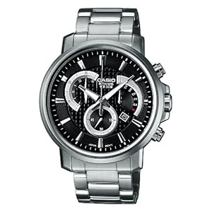 Casio Edifice / Anzeige: analog / Uhrwerk: Quarzuhr / wasserdicht: bis 5 bar (50 m) / beleuchtete Anzeige / Datumsanzeige / Batteriebetrieb / Gehäuse: Edelstahl / Armband: Edelstahl / Verschluss: Sicherheitsfaltschließe / Gehäusegröße: 44 mm / Gehäusehöhe: 10,0 mm
