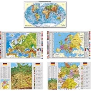 Der Verkaufspreis für die 5 Karten inkl. Versandkosten läge laut Hersteller bei 149,- Euro – eine mehr als ordentliche Ersparnis also. Die Karten Welt, Europa, Deutschland haben einen sichtbaren handgezeichneter 3-D Reliefeffekt mit Schummerungen (nicht fühlbar). Die Karten sind Top aktuell inkl. Südsudan! Die Größe je Karte beträgt 86x54cm.