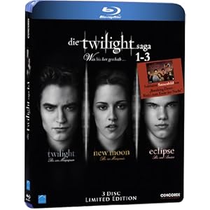 Bei Amazon gibt es gerade die Limited Edition des Films Die Twilight Saga 1-3: Twilight / New Moon / Eclipse [Blu-ray] für nur 20,99 Euro inkl. Versand.