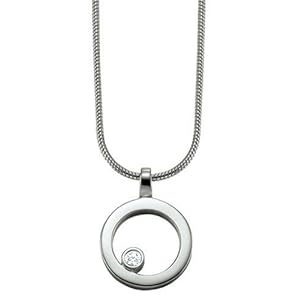 polierte Schlangenkette in echt Silber 925/-, rhodiniert (anlaufgeschuetzt), polierter Anhaenger mit gefasstem Stein, sicherer Karabiner-Verschluss mit Logoplaettchen