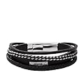 Fossil Jewelry Herren-Armband Leder schwarz PU Schwarz Stahl JF00071040