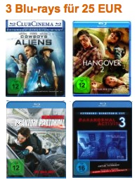 [AMAZON] Neue Titel! „Drei Blu-rays für nur 25,- Euro inkl. Versand“ Aktion mit z.B. Mission: Impossible 4 – Phantom Protokoll, Cowboys & Aliens, Hangover 2