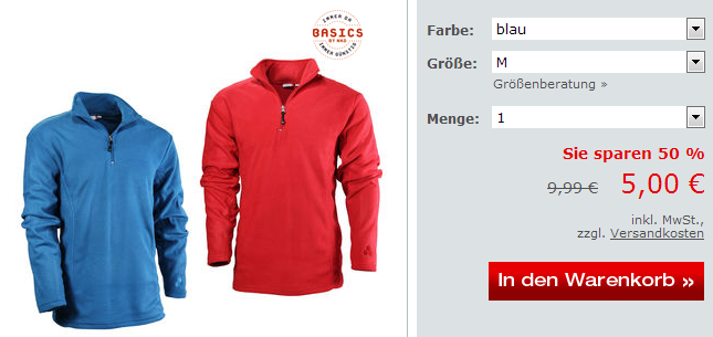 Ein Beispiel wo ihr echt gut sparen könnt ist einen Herren-Fleece-Troyer, den ihr dank des Gutscheincodes „Willkommen2012″ für 0,- Euro bekommt.