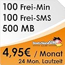 • Smartphonetarif DeutschlandSIM ALL-IN 100 inklusive 100 Frei-Minuten und 100 Frei-SMS erhältlich pro Monat für nur 4,95 Euro im o2-Netz