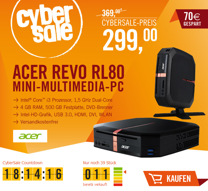 [CYBERPORT] Cyber Sale! Acer REVO RL80 – DT.SM4EG.005 für nur 299,- Euro inkl. Versand