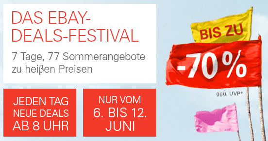 Ebay startet jetzt 7 Tage ein Deals Festival und knallt haufenweise Angebote raus. Wir haben das ganze mal für euch durchsucht und die (aus unserer Sicht) lohnenswertesten hier aufgelistet…