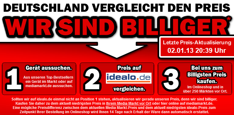 Die Aktion von Mitte 2011 ist wieder da! Wer zwischen dem 2. und dem 5. Januar bei Media Markt einen Fernseher kauft, bekommt diesen zum günstigsten Idealo-Preis!