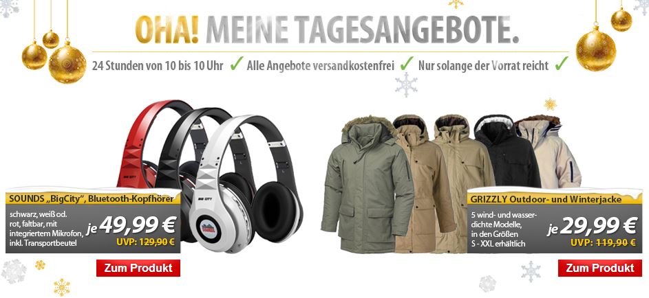 Das erste OHA-Angebot von heute sind die verschiedene GRIZZLY Winterjacken für nur 29,99 Euro inkl. Versand