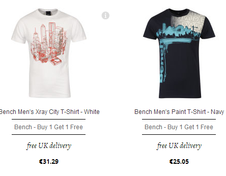 Gerade bei Bench ergeben sich hier richtig gute Preise. T-Shirts bekommt man hier effektiv für ca. 10,- Euro pro Stück.