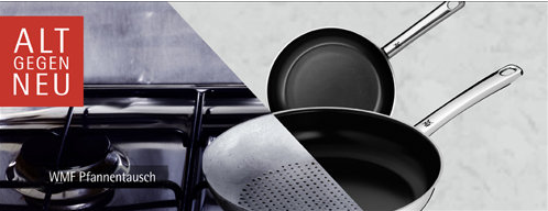 Bei Amazon läuft wieder der WMF Pfannentausch -wer sich hier eine Pfanne aus dem Aktionssortiment aussucht, der erhält fein 10,- Euro Rabatt.