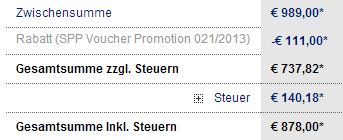 - Ganz einfach…. legen Sie Rechner und Zubehör in den Warenkorb und geben Sie dann folgenden Gutscheincode ein: 111EURO-JAN14