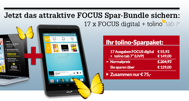 Nur 200x verfügbar! 17 Ausgaben Focus digital + tolino tab 7 für nur 75,- Euro