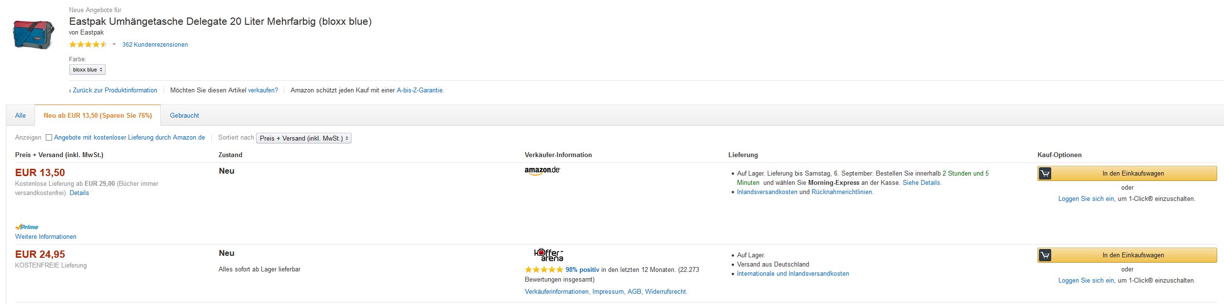 Bei Amazon Prime Lieferung ohne Versandkosten – andernfalls fallen 3,- Euro an oder ihr legt noch was dazu in den Warenkorb und kommt so über die obligatorischen 20,- Euro.