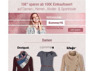 10,- Euro Galeria Gutschein ab 100,- Euro Bestellwert auf Damen-, Herren-, Kinder- & Sportmode!
