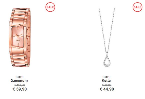 Bei Christ gibt es momentan nochmal 20% Rabatt auf den bereits reduzierten ESPRIT Schmuck.