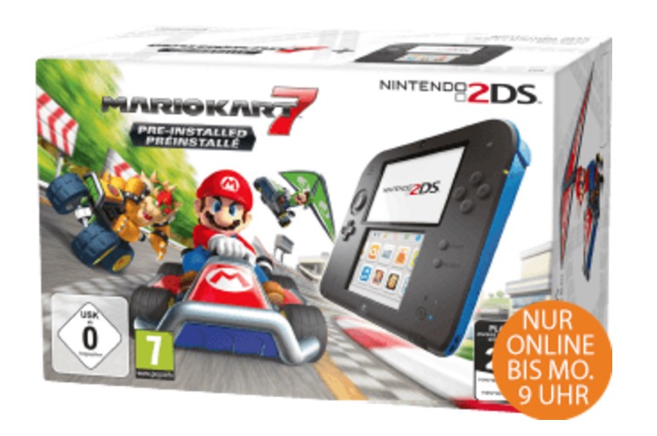 Bei Saturn bekommt ihr heute den NINTENDO 2DS Schwarz/Blau inkl. Mario Kart 7 für nur 75,- Euro inkl. Versand.