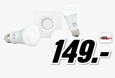 - Philips Hue 2er Starter-Set mit Hue Bridge 2.0 für nur 65,- Euro (Preisvergleich: 72,- Euro)