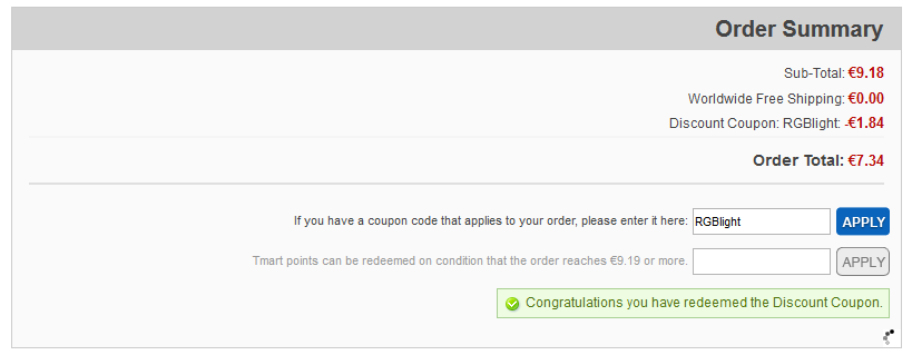 Um auf den Preis zu kommen, gebt ihr im Warenkorb einfach den Gutscheincode RGBlight ein. Wichtig ist, dass ihr euch vorher einen Account erstellt und einloggt, denn nur dann könnt ihr den Code eingeben.