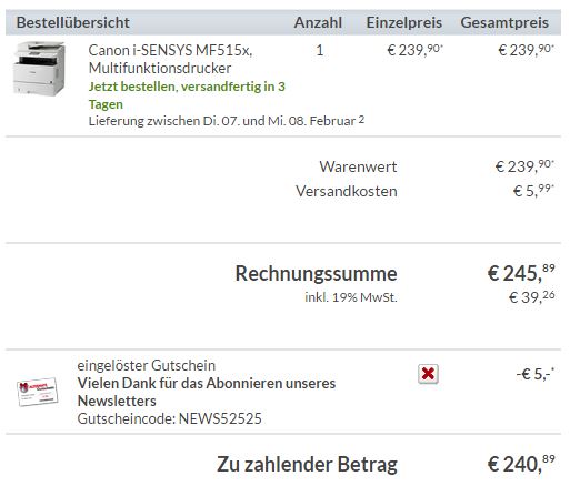 Um auf den Preis zu kommen, nutzt ihr einfach den 5,- Euro Newsletter Gutschein, dieser lautete bei mir NEWS52525