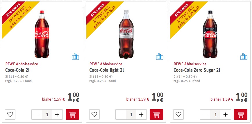 Bei REWE gibt’s nur noch heute (6. Oktober) noch die große Coca Cola 2 Literflasche für nur 1,- Euro.