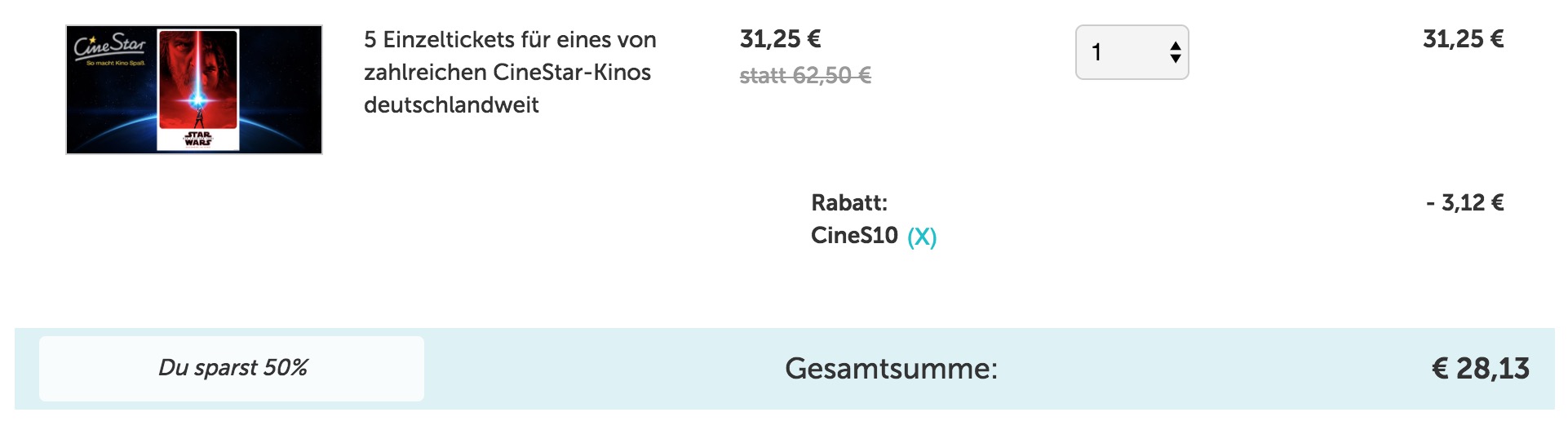 Um auf den Preis zu kommen, nutzt ihr im Warenkorb einfach den Gutscheincode CineS10