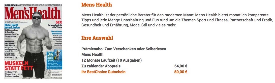 Jahresabo der Zeitschrift Men´s Health nur 54,- Euro – Prämie 50,- Euro Bestchoice