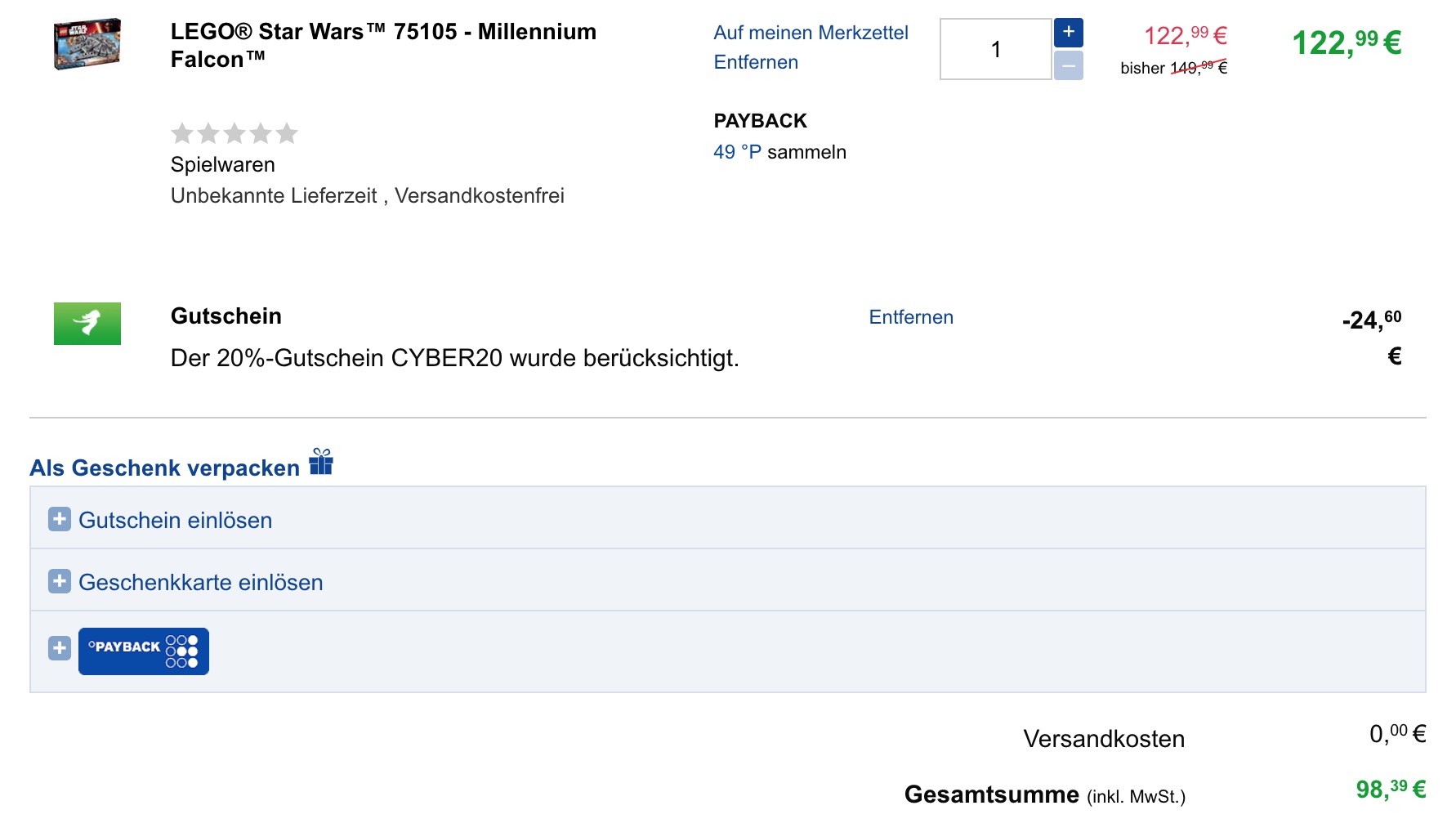 Um auf den Preis zu kommen, nutzt ihr im Warenkorb bitte den Gutscheincode CYBER20