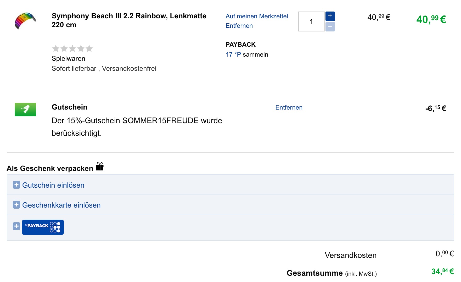 Auf den Preis kommt ihr durch den Gutscheincode SOMMER15FREUDE