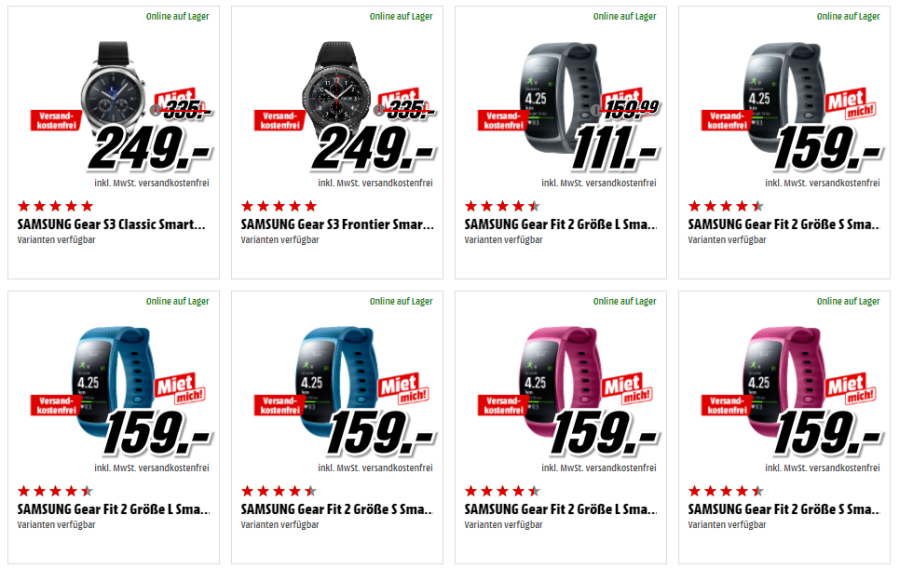 Tiefpreisspätschicht mit verschiedenen Samsung Smartwatches und Wearables