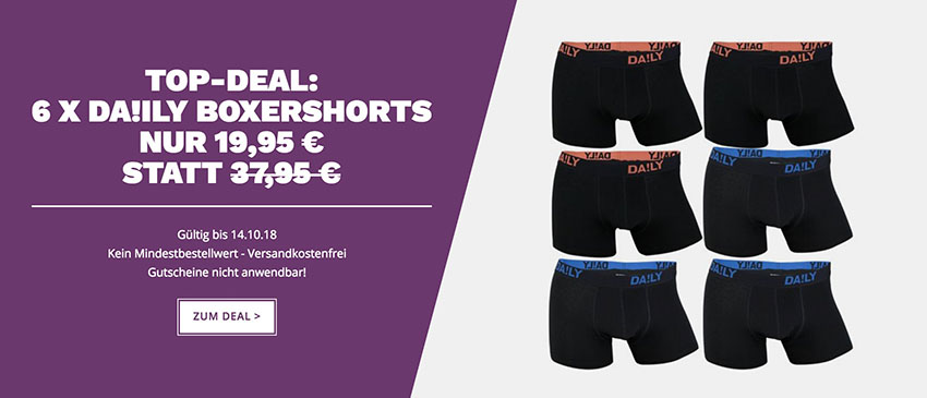 6er-Pack Daily Underwear Herren-Boxershorts (S-6XL) für nur 19,95 Euro inkl. Versand