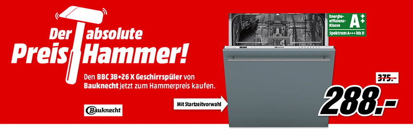 Bei MediaMarkt bekommt ihr zur Zeit den BAUKNECHT BBC 3B+26 X Geschirrspüler für nur 288,- Euro inkl. Lieferung.