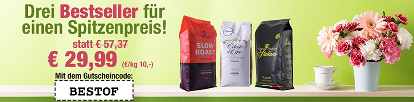 Nur noch heute: Kaffeepaket mit 3 Premiummarken (3kg) für nur 29,99 Euro inkl. Versand