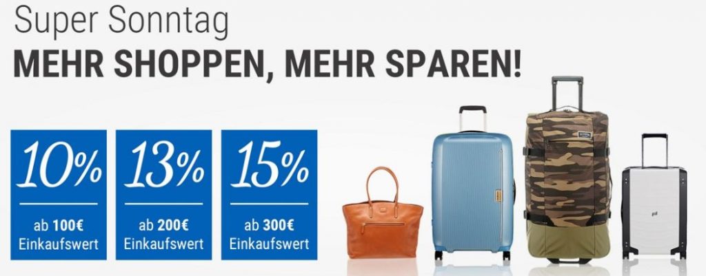 Koffer-Direkt bietet an diesem Wochenende eine Aktion, die euch bis zu 15% Extrarabatt auf alle Artikel im Shop einbringt.