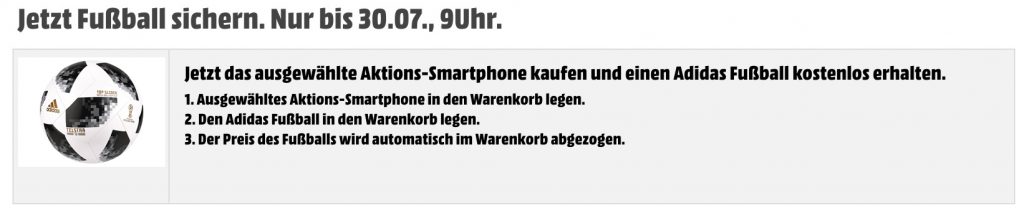 Zusätzlich kann man über die Aktionsseite noch einen Adidas Fußball kostenlos in den Warenkorb legen.