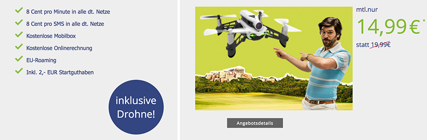 o2 my Data M Datentarif mit 10GB LTE Falt für mtl. 14,99 Euro + Parrot Mambo FPV Drohne gratis!