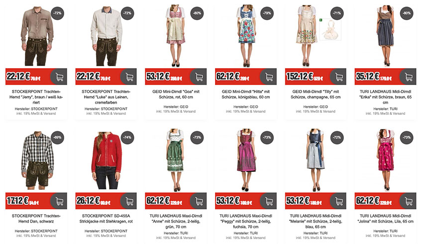 Oktoberfest-Sale bei Top12 mit bis zu 81% Rabatt – z.B. stark reduzierten Trachtenhemden oder Dirndl