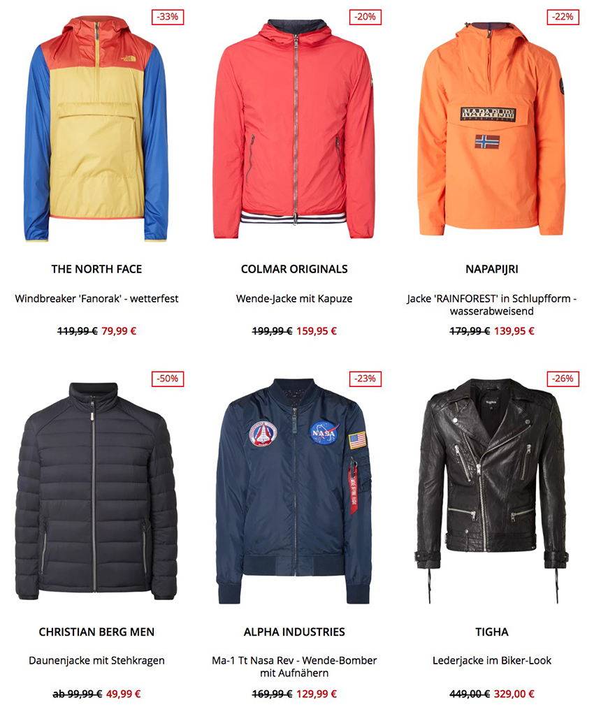 Einen Gutscheincode benötigt ihr hier nicht, die Preise sind allesamt bereist angepasst. Auf der Aktionsseite findet ihr insgesamt über 1.000 verschiedene Jacken von vielen verschiedenen Marken.