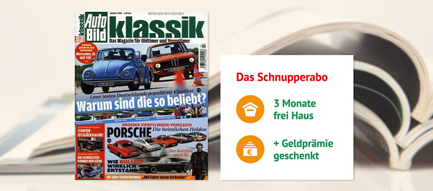 Aktuell bekommt ihr bei KioskPresse das dreimonatige Schnupperabo mit 3 Ausgaben der Auto Bild klassik für 14,40 Euro inkl. Zustellung.