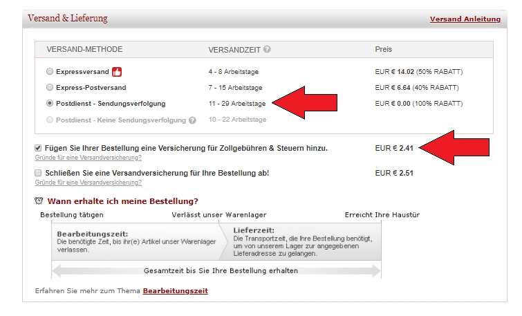 Die Versicherung kann man im Bestellprozess zwar auch abwählen, dann bleibt man aber ggf. auf den 19% EUSt. sitzen.
