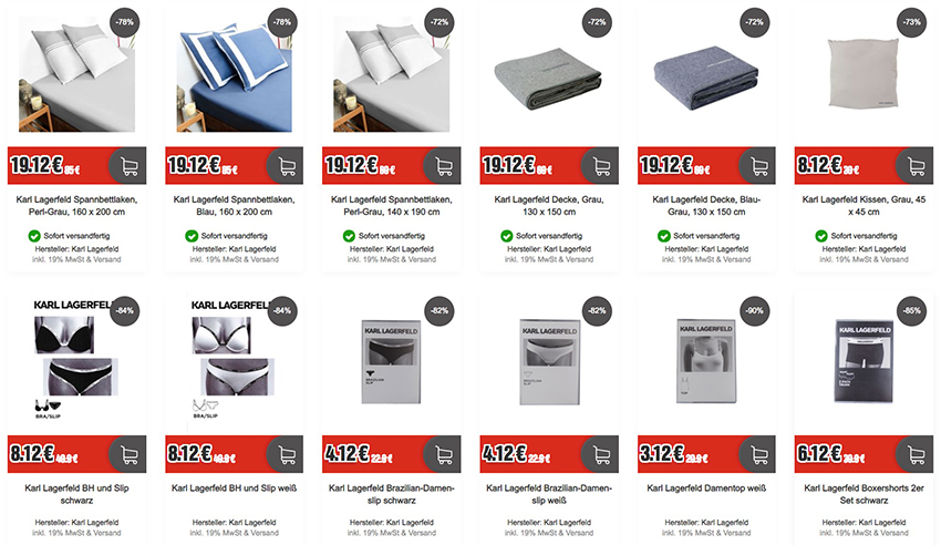 Bei Top12 läuft aktuell der große Karl Lagerfeld Sale mit vielen verschiedenen Produkten zu stark reduzierten Preisen.
