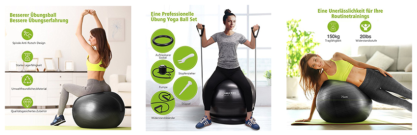 - 75cm Gymnastikball: Aus hochwertigem PVC-Material hergestellt. Anti-Burst-Design bietet eine sichere Garantie für die Verwendung. Die Oberfläche ist nicht klebrig.