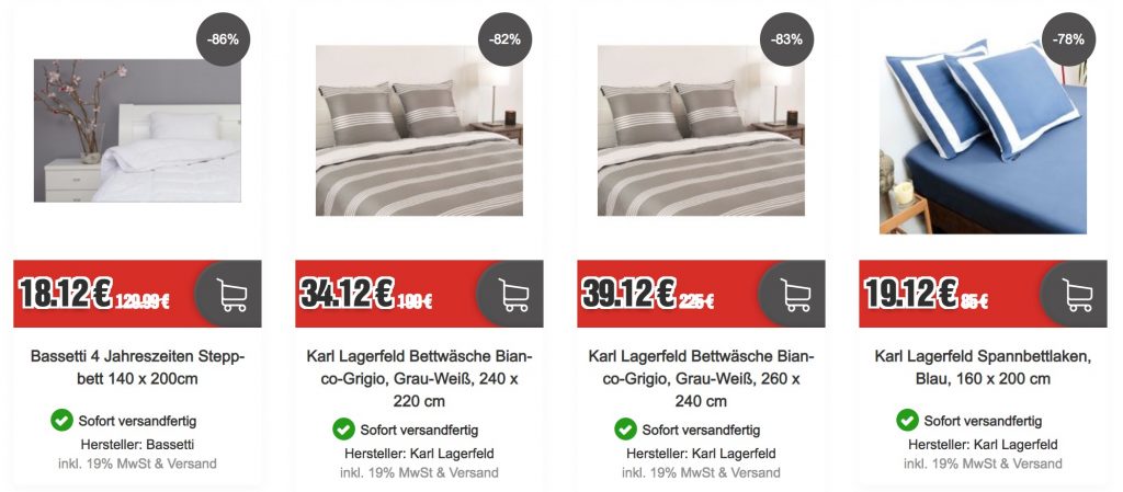 Wer also noch sein Schlafzimmer ein wenig aufpeppen will, sollte hier einmal einen Blick in den Sale werfen, denn zu den Preisen kann man ohne Zweifel das ein oder andere brauchbare  Schnäppchen ergattern.