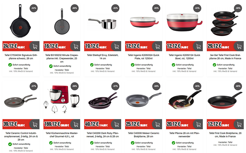 Bei Top12 bekommt ihr aktuell verschiedene Küchenartikel der Marke Tefal zu stark reduzierten Preisen!