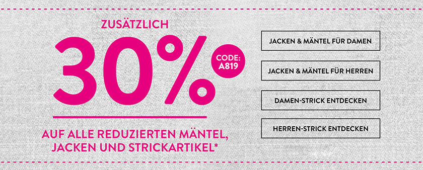 30% Rabatt auf reduzierten Mäntel, Jacken & Strickartikel im Adler Onlineshop