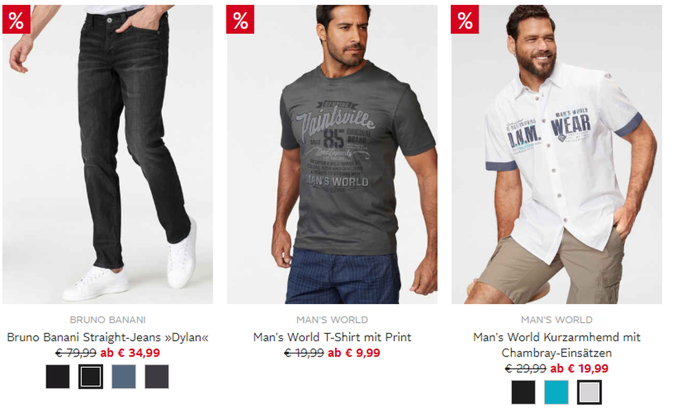 Mit dabei sind Marken wie Bruno Banani, Adidas oder S.Oliver. Neben Mode findet ihr aber auch Artikel aus anderen Produktkategorien. Einen Code benötigt ihr nicht, die Preise sind bereits angepasst. Mit dem Code 81602 und einer Registrierung als Neukunde könnt ihr euch aber 15,- Euro Neukundenrabatt sichern und außerdem die Versandkosten von 5,95 Euro. Hier findet ihr einige Produktbeispiele: