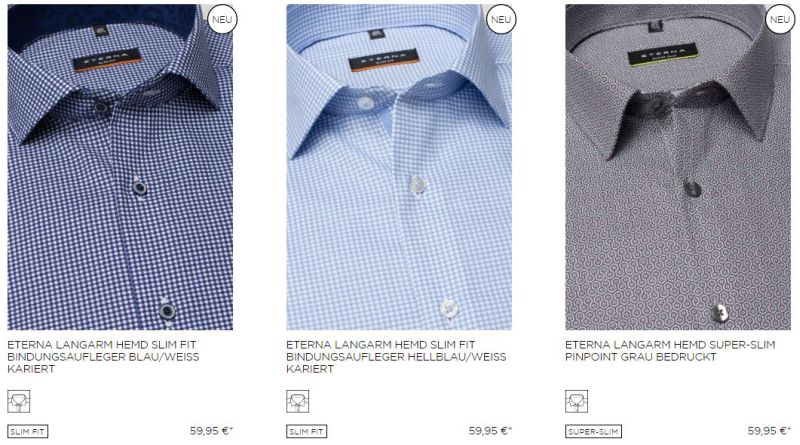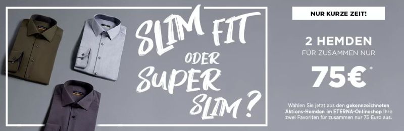Bei Eterna läuft aktuell eine super Aktion, bei der ihr zwei Hemden für zusammen 75,- Euro bekommt.