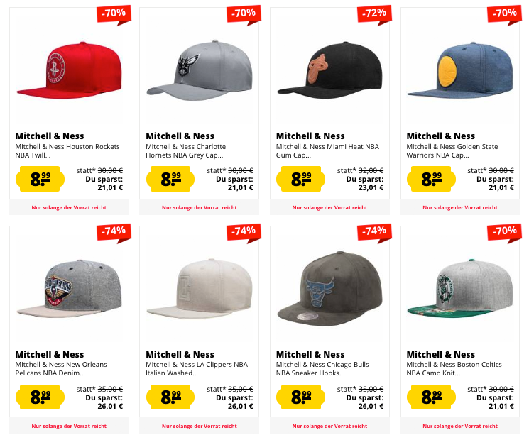 Im SportSpar Onlineshop gibt es zur Zeit viele verschiedene Mitchel & Ness Caps zu stark reduzierten Preisen.