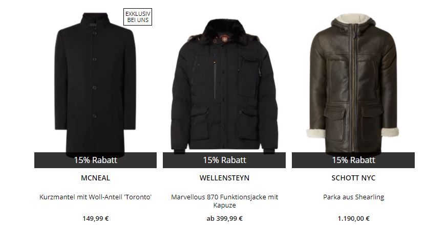 Bei Peek & Cloppenburg* erhaltet ihr dieses Wochenende satte 15% Rabatt auf Outdoor Mode.