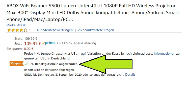 Auf den Preis gelangt ihr durch den 5% Rabattcoupon auf der Artikelseite und den Einsatz des Gutscheincodes 5JY6NHLU bei der Bestellung an der Kasse.