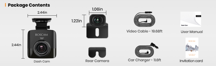 BOSCAM S1 1520P Dashcam mit Rückkamera Technische Daten: